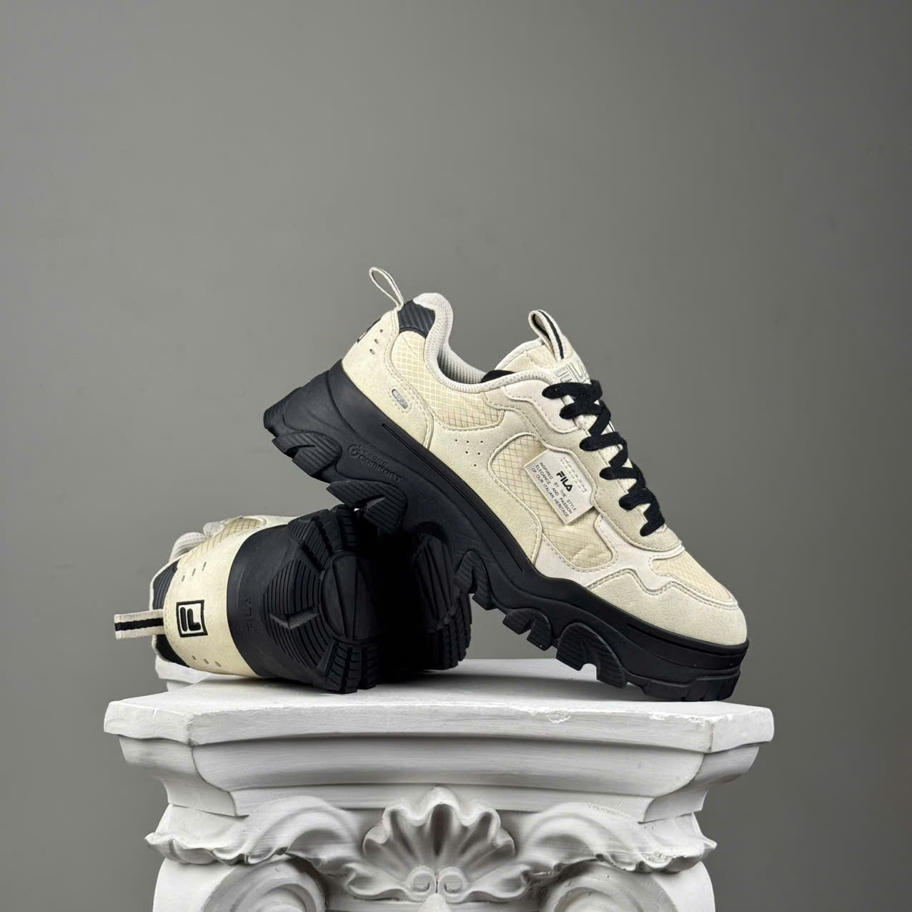 SZ 37.5 FILA Chunky vải da lộn kem F12W232173BWA