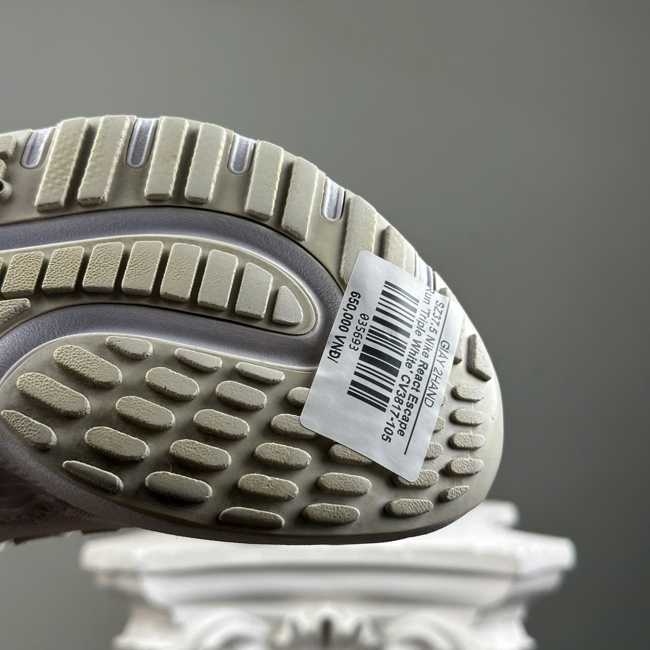 SZ37.5 Nike React Escape Run 'Triple White' CV3817-105 035693