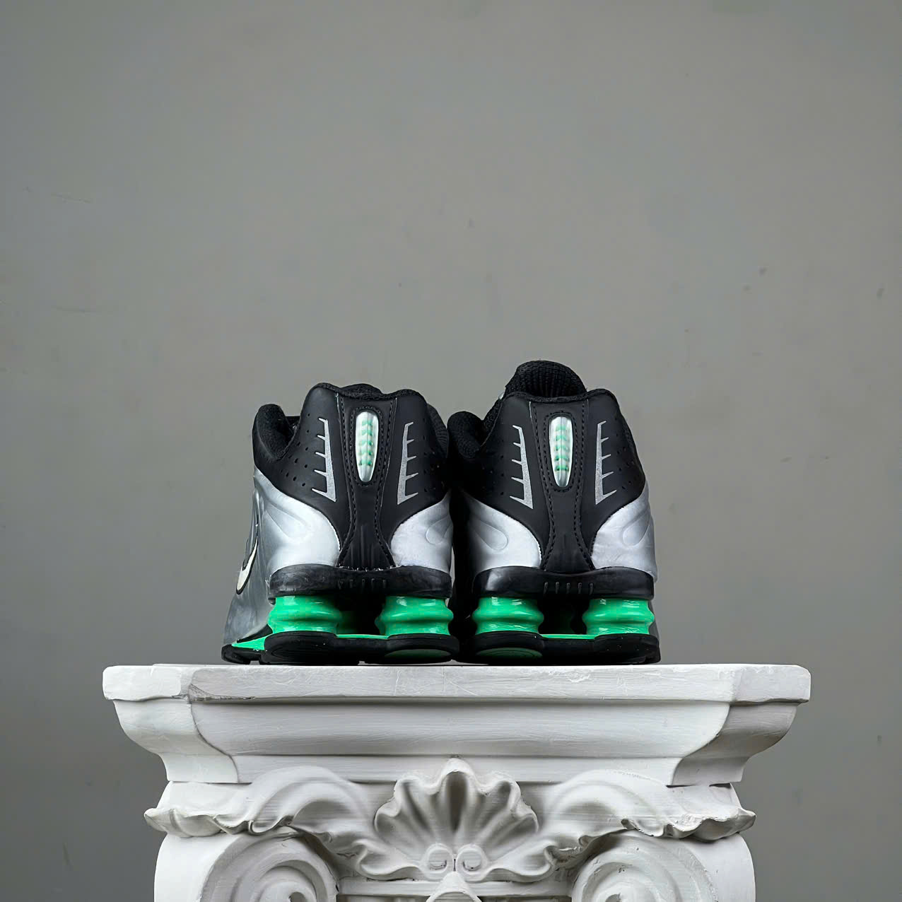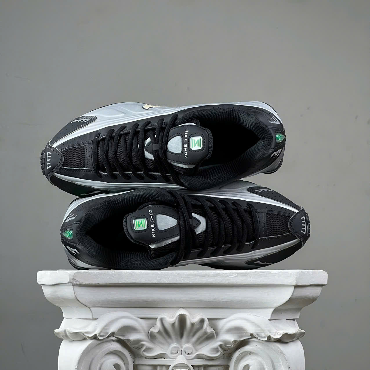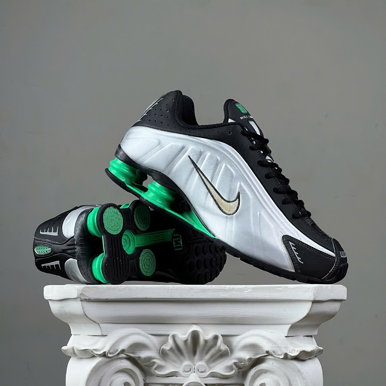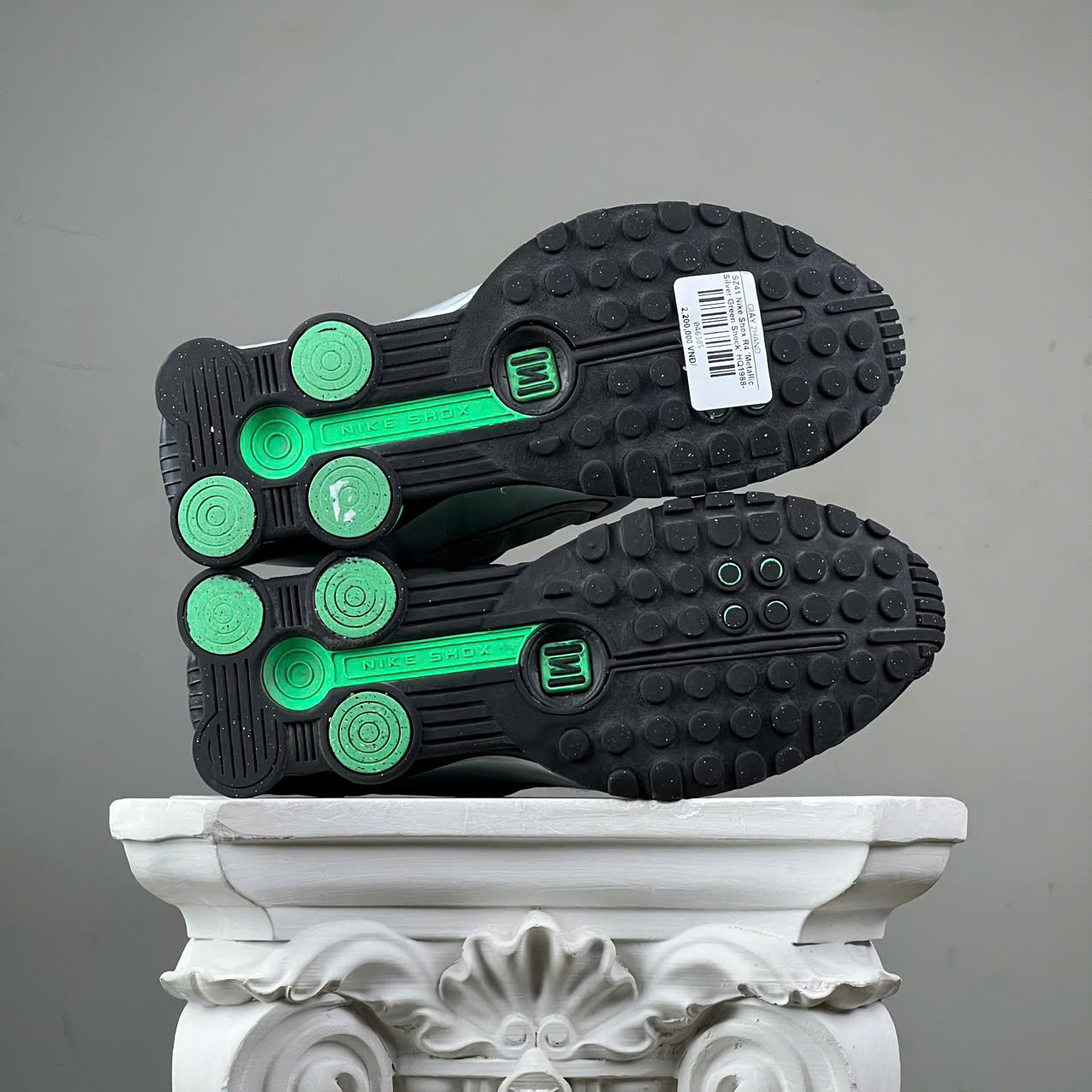 SZ41 Nike Shox R4 'Metallic Silver Green Shock' HQ1988-006 046305