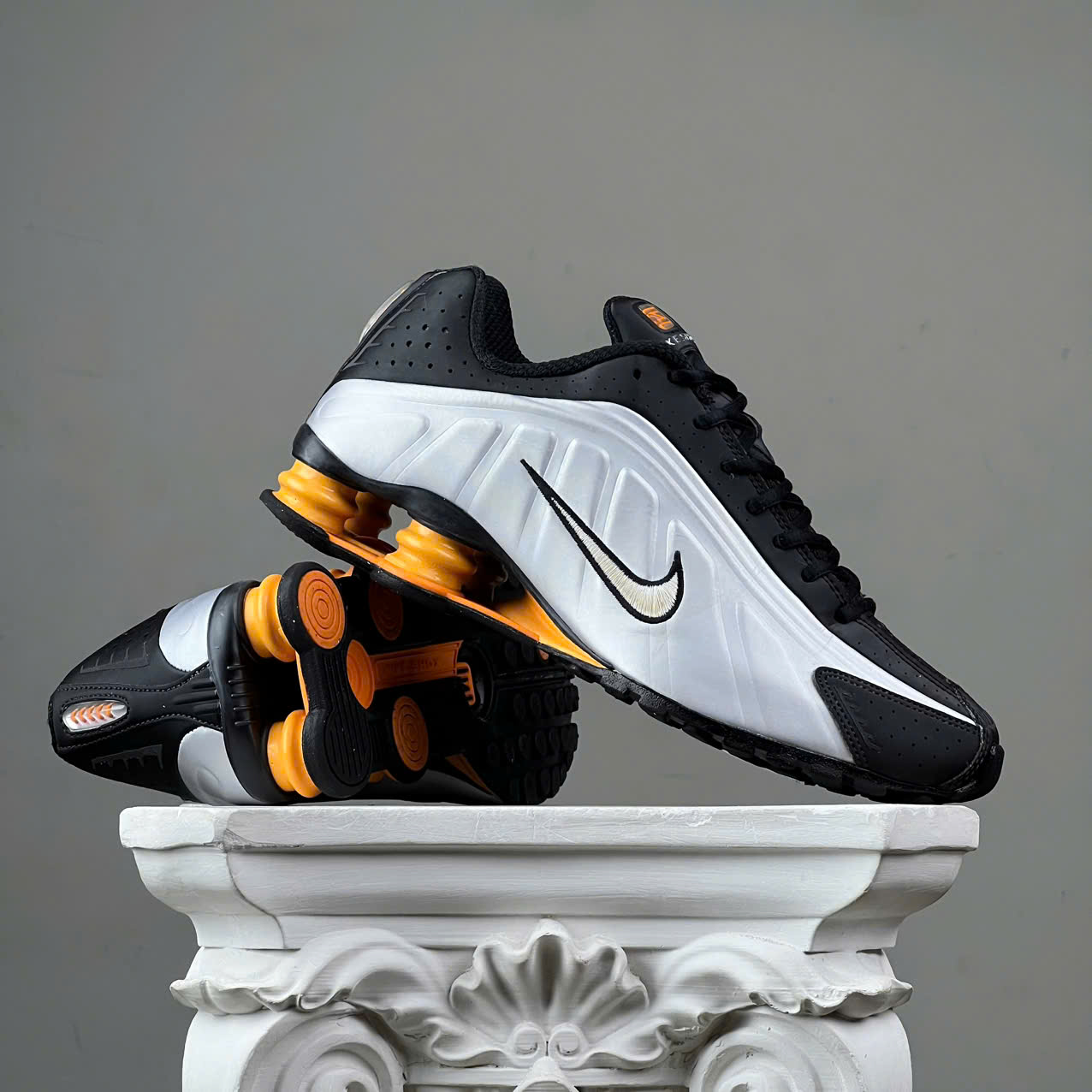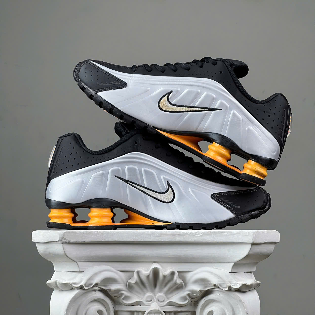 SZ43 Nike Shox R4 'Black Vast Grey Bright Mandarin' HQ1988-003 046298